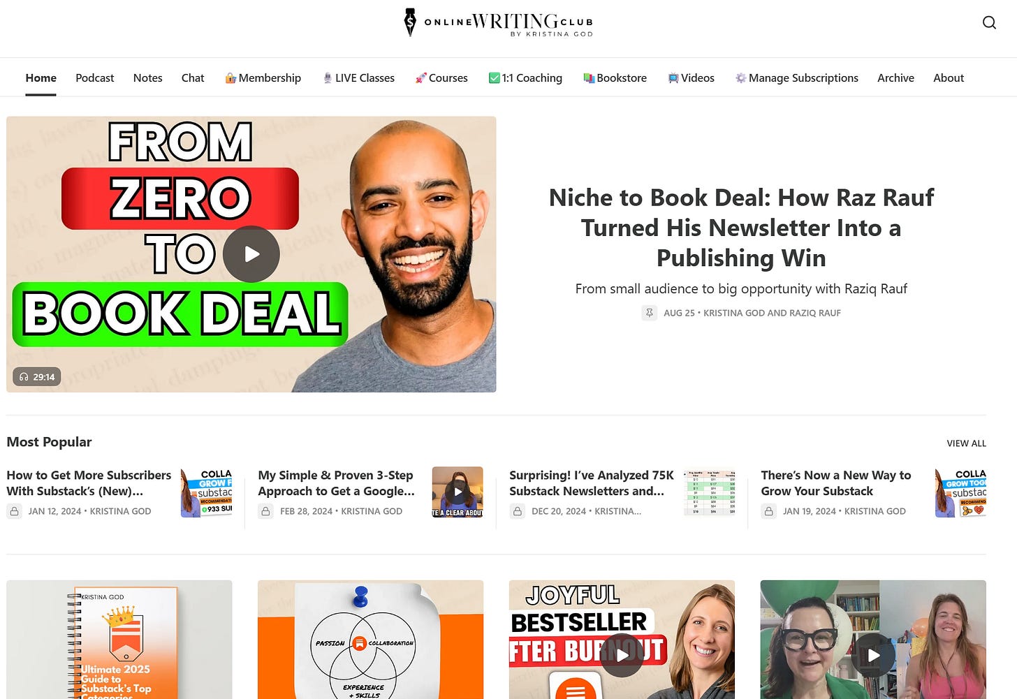 Kristina is a Substack global education bestseller, with her newsletter The Online Writing Club reaching almost 15,000 subscribers and 26,000 followers.